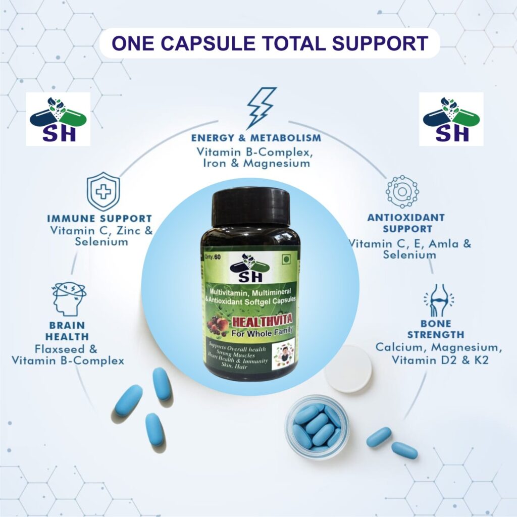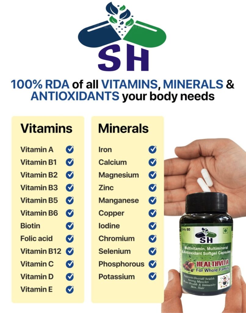 Designed for the whole family, our HEALTHVITA multivitamin ensures daily nutritional needs are met with scientifically backed ingredients that promote overall wellness.